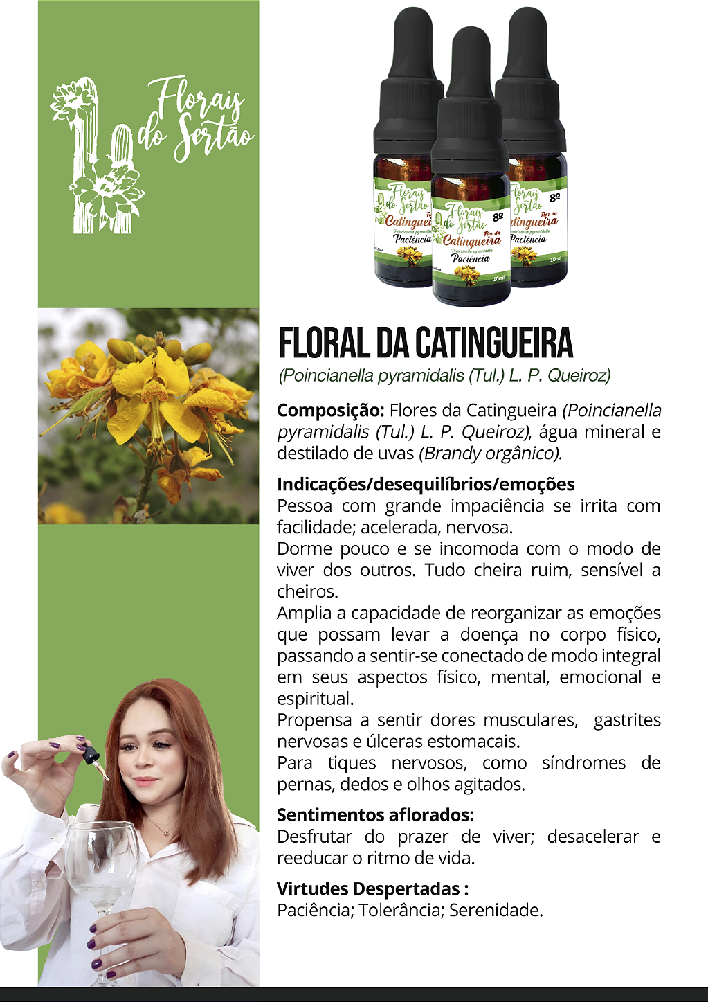 Composição: Flores da Catingueira (Poincianella pyramidalis (Tul.) L. P. Queiroz), água mineral e destilado de uvas (Brandy orgânico).